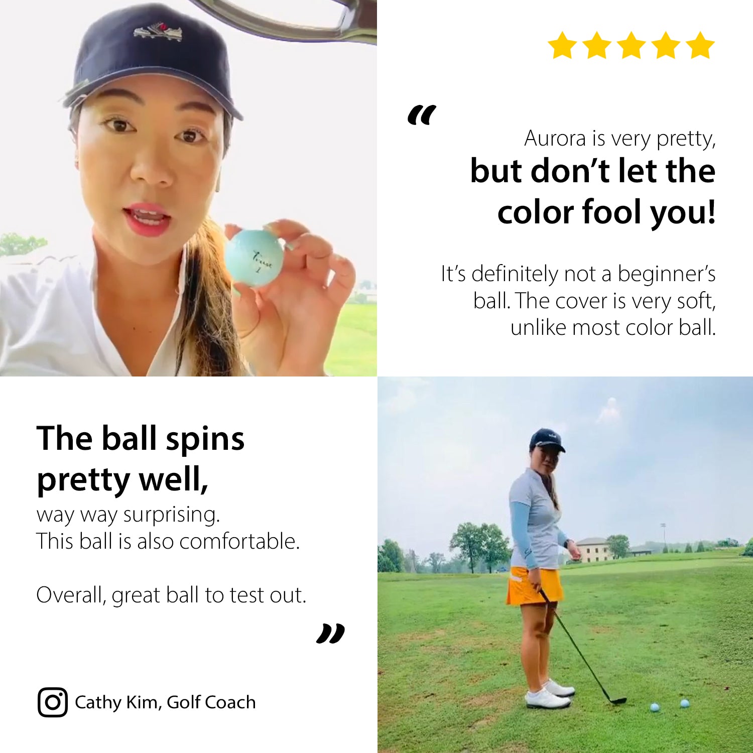 The Trust team, with their expertise in design, materials, core, and cover, have achieved a material fusion in Aurora: urethane-covered, soft-feeling balls that spin accurately, yet endure and don't compromise distance.