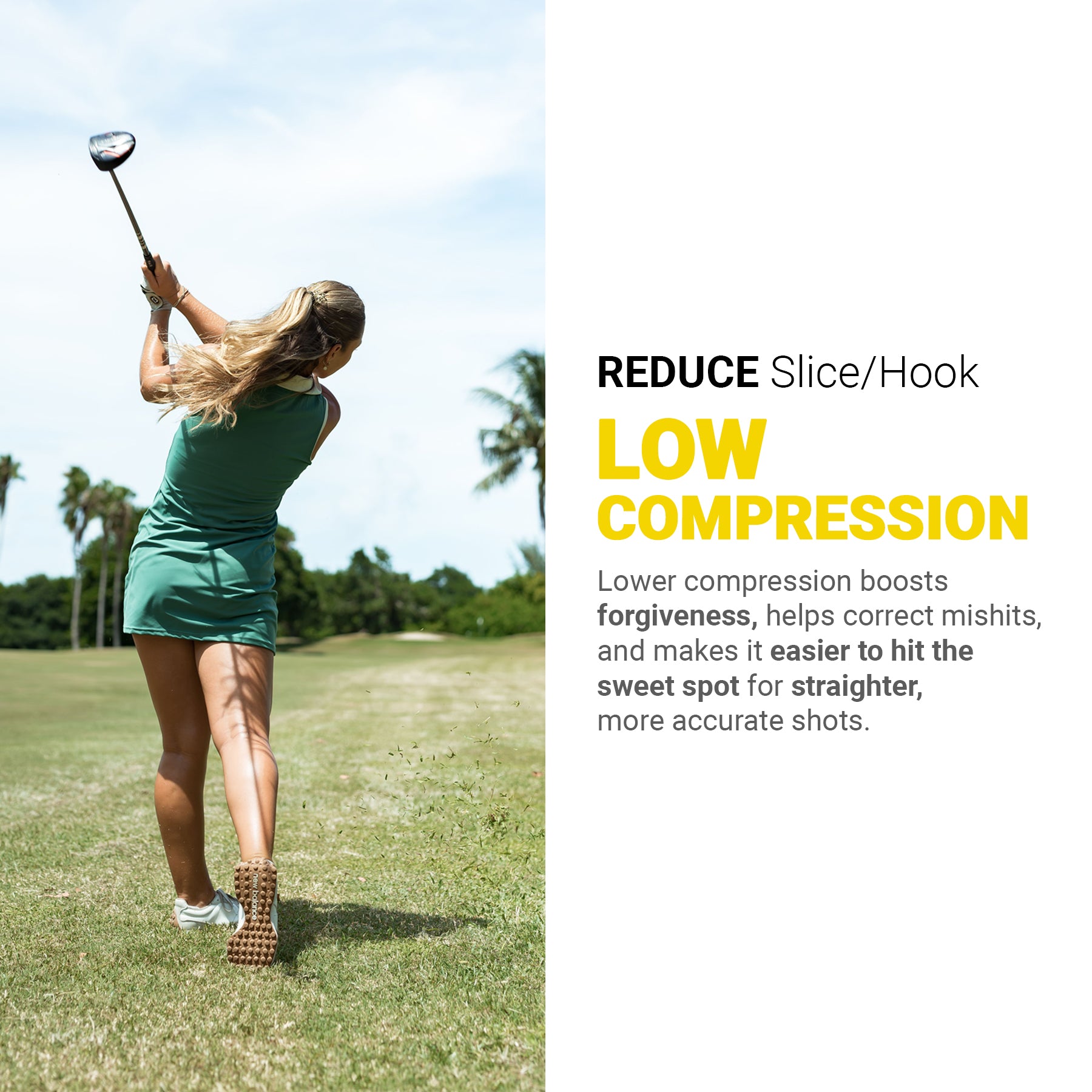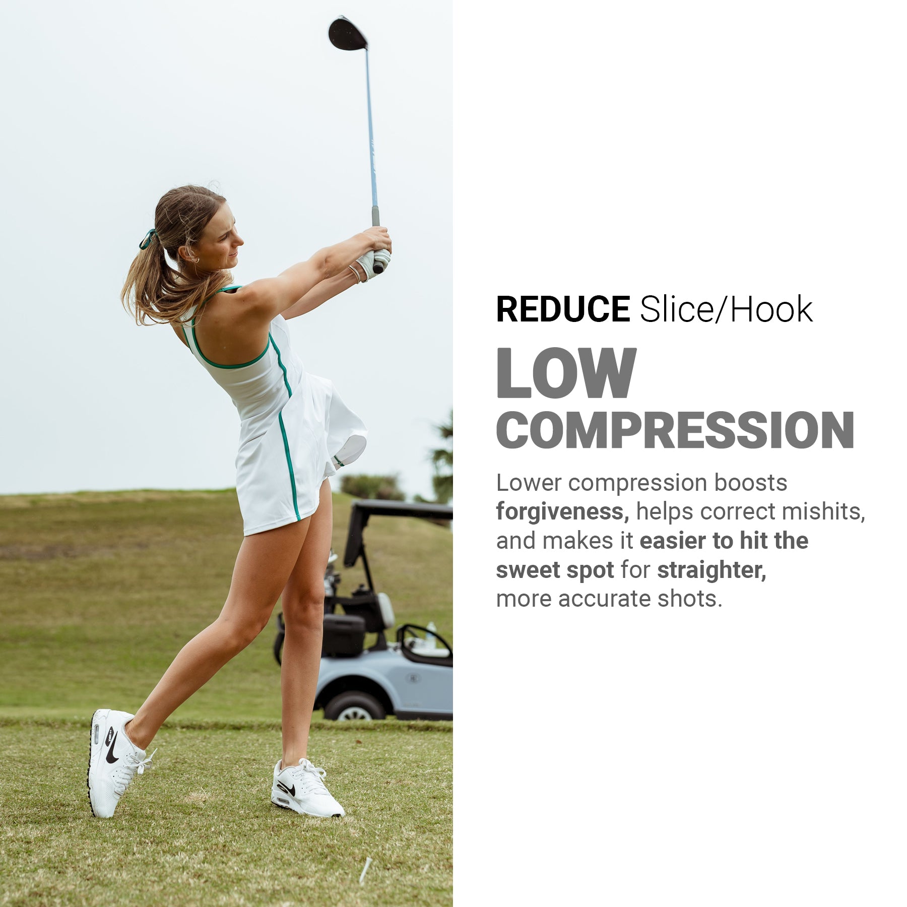 In addition to the low-compression core, Panther’s soft urethane cover increases contact time with the clubface, enhancing feel and control.